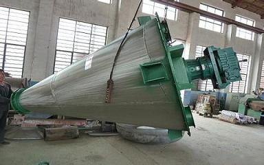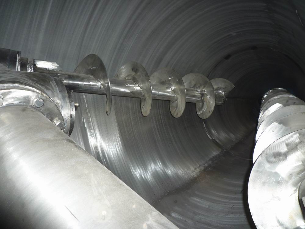 3、螺旋公轉(zhuǎn)與自轉(zhuǎn)相互配合,將物料受螺旋旋轉(zhuǎn)吸收,同時(shí)向圓周方向排散。